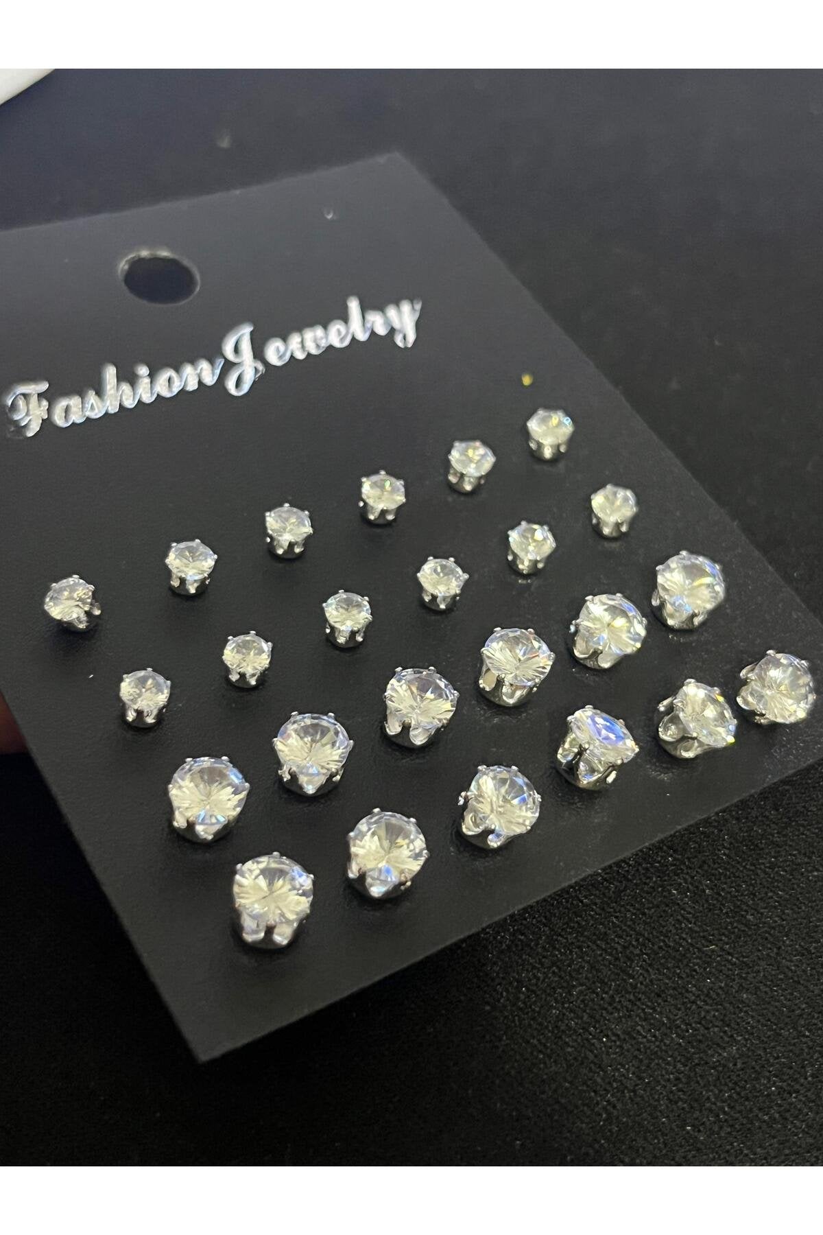 12 Adet Farklı Boylarda Gümüş Taşlı Küpe Seti