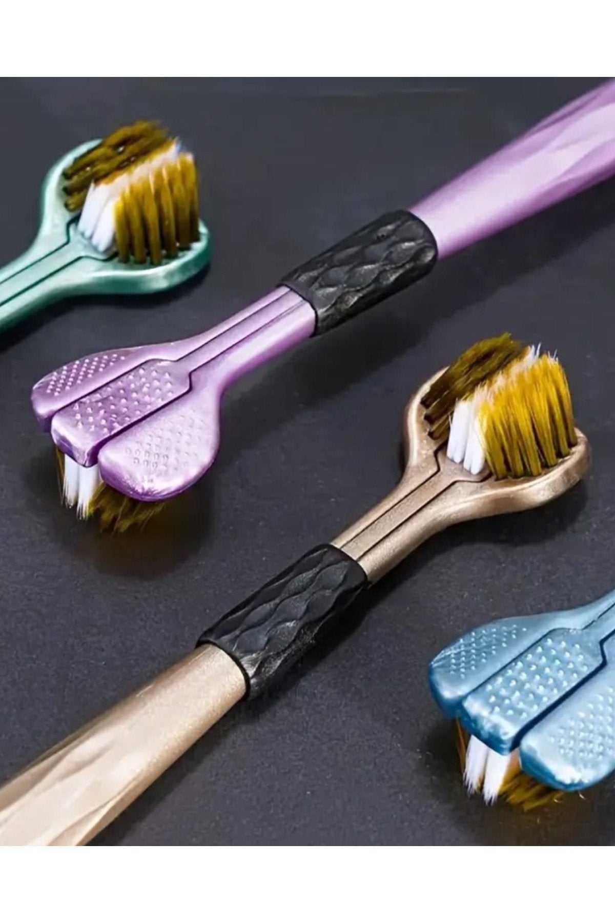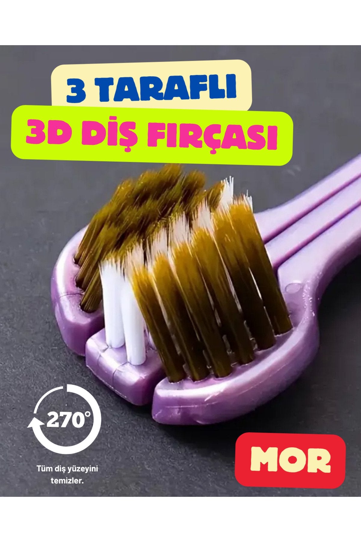 3 Taraflı Diş Fırçası Mor Renk 3 Boyutlu Yumuşak Uçlu Komple Temizlik Çok Yönlü Koruma