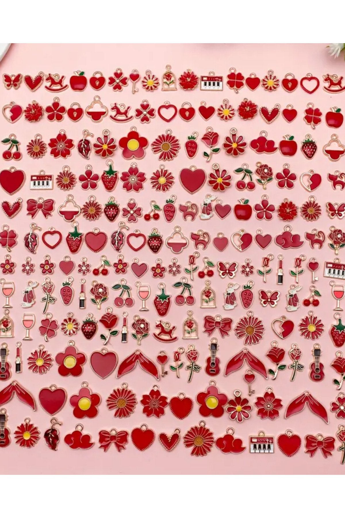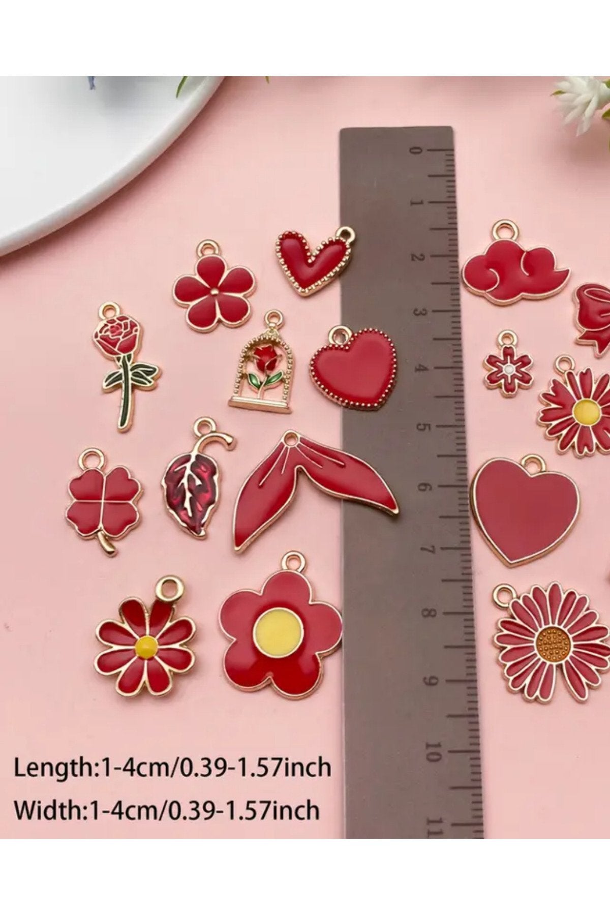 Kırmızı 10 Adet Kolye Ucu Seti Karışık Gelir Sadece Kırmızı Charm Bileklik Bilezik Küpe Ucları Seti