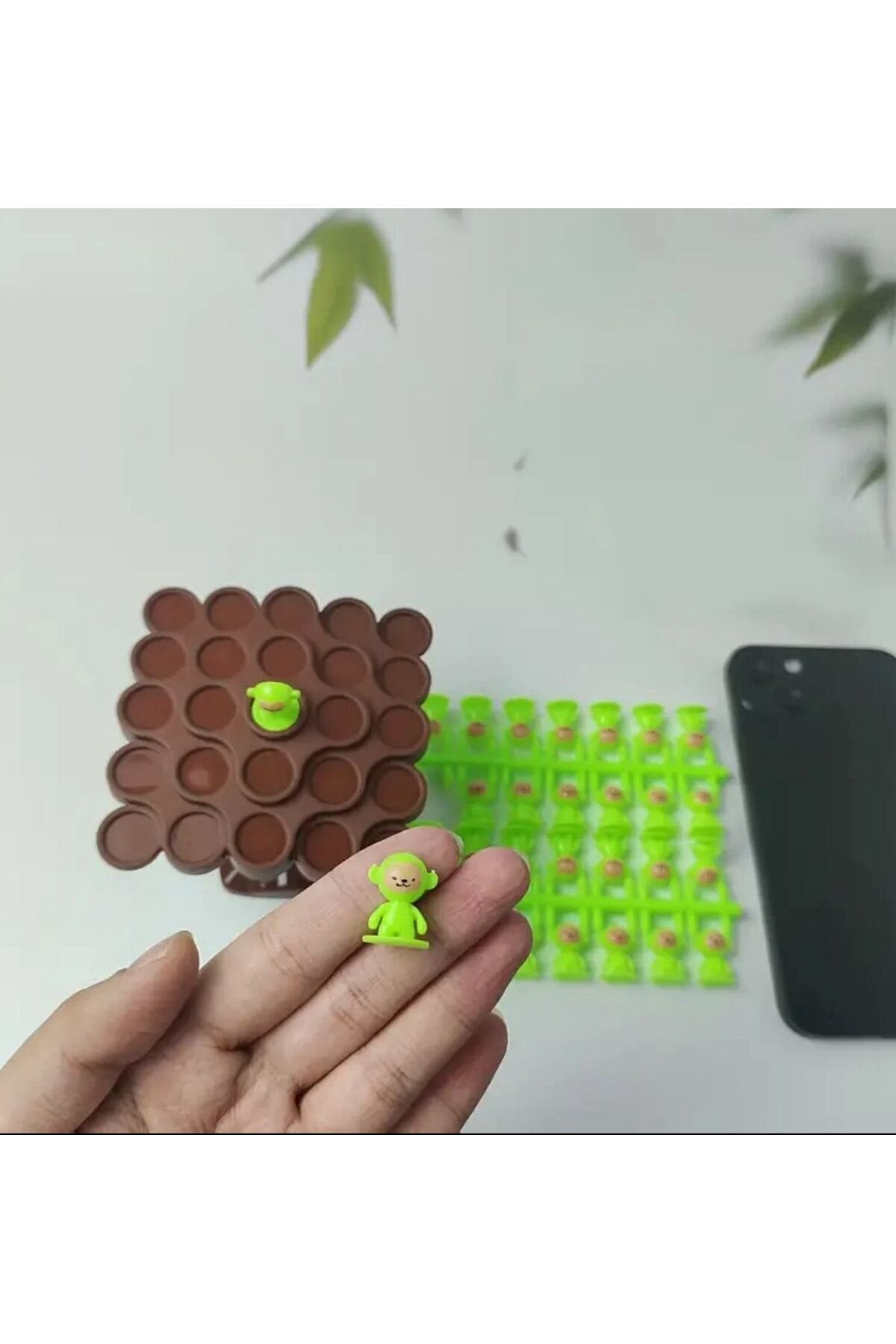Sevimli Maymunlar Ağaç Denge Oyuncağı Yeşil Kahverengi Renkli Ailecek Oynanabilir